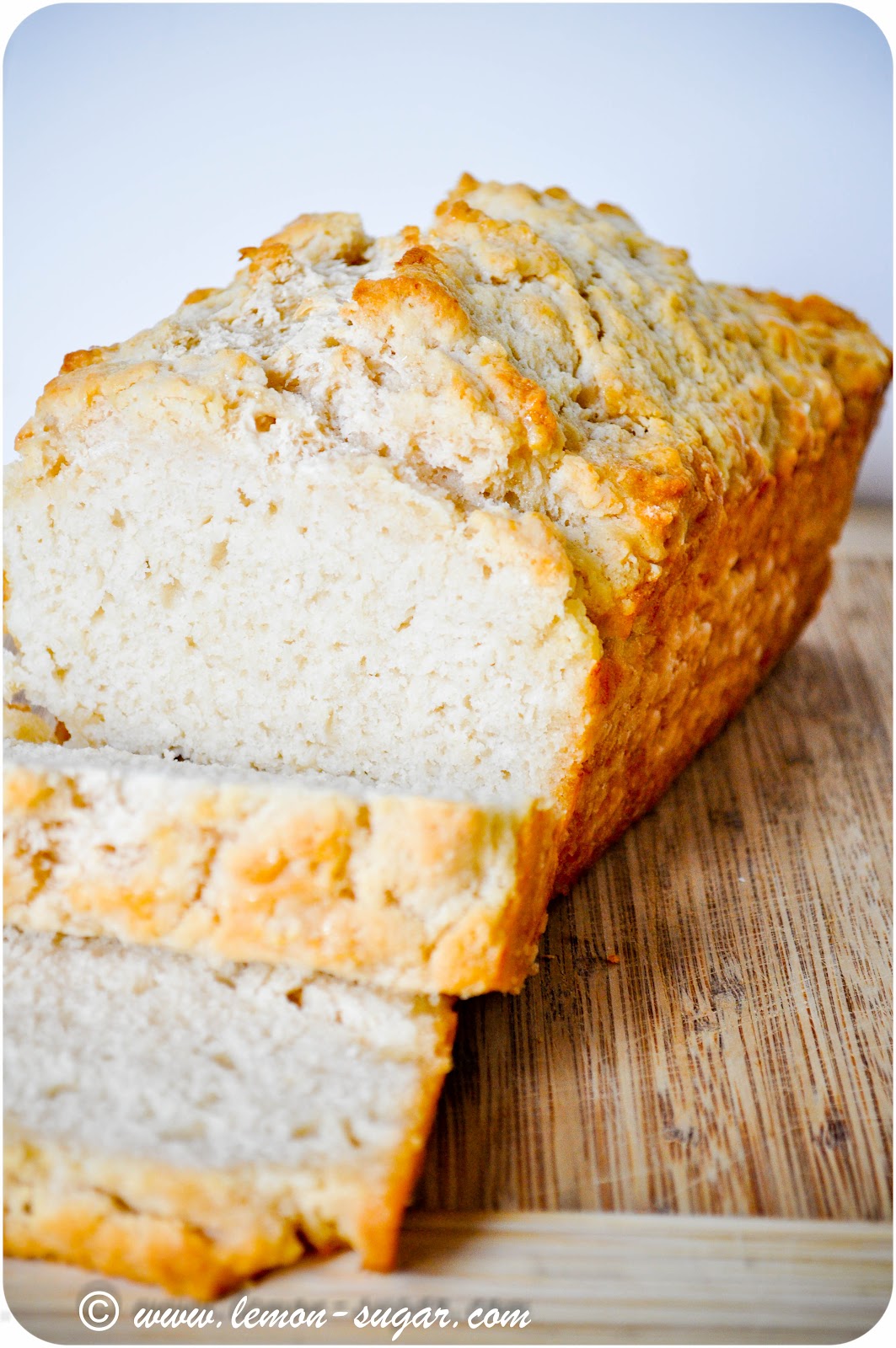 The great thing about this recipe is that (besides the beer, for some) it’s made with pantry staples.  To get a nice, tall loaf, make sure you use the 9x5x3 loaf pan.  And to keep it fresh for the next day, wrap it tightly in plastic wrap – but this is definitely best eaten in the first day or so.