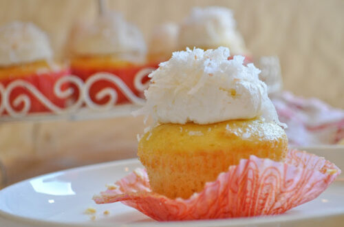 A couple of quick tips for this recipe. First, if you are baking in dark or coated muffin tins, I would recommend placing a cookie sheet (preferably aluminum) under the tins. These bake at a relatively low temperature so they’re in the oven longer than normal cupcakes, so you want to be sure they bottoms don’t get too brown.