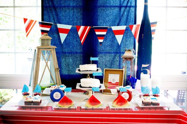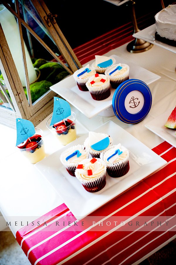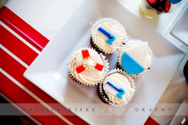I had some trouble deciding what to make for this particular party. I knew I didn’t want chocolate, so I originally went with a yellow cake filled with pastry cream. But after those came out of the oven, I didn’t like the way they looked with my nautical fondant decorations, so I nixed that idea. This, mind you, was at 11:15pm. A quick decision led to a late-night grocery store run, and yellow cake morphed into red velvet cake. I don’t know why I do these things. I’m telling you, it’s a sickness.