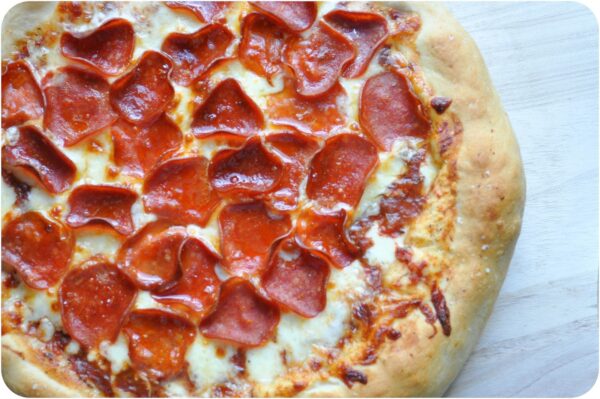 Today, I noticed we were on the same path – it was a busy day and I had absolutely no plan for dinner and I just couldn’t face another turkey sandwich. A block of mozzarella cheese and a package of turkey pepperoni in my fridge meant just one thing – pizza. And, this pizza recipe is relatively quick and pretty darn easy. Perfect.