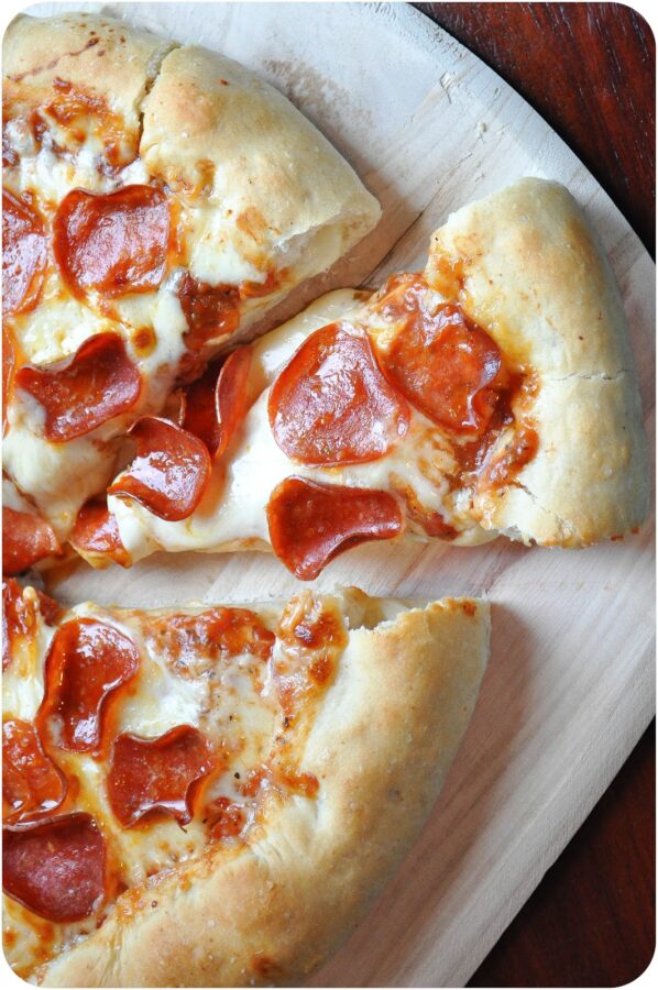 I’ve used this crust recipe a couple of times and it’s a good one – especially because it takes just over an hour to prepare and rise. It’s thick and chewy, and perfect for holding all of your favorite toppings.